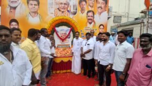மாவட்ட தலைவர் தாமரை ஜெகதீசன் தலைமையில் நடைபெற்ற இவ்விழாவில் அனைத்து அணி மற்றும் பிரிவுகளின் அமைப்பாளர் ராகவன், சிறப்பு அழைப்பாளராக கலந்து கொண்டு அன்னாரது திருஉருவ சிலைக்கு மலர் மாலை அணிவித்து மரியாதை செலுத்தினார்.