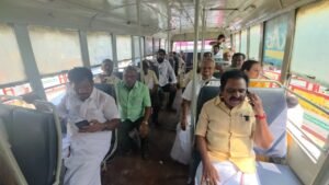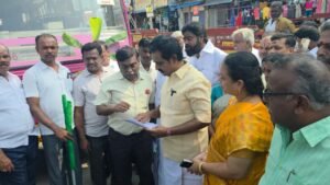 2. ஒலிமுகமதுபேட்டை – மாவட்ட ஆட்சியர் அலுவலகம் – செவிலிமேடு வரையிலும் என இரண்டு வழித்தடங்களில் செல்லும் புதிய நகரப் பேருந்து சேவையை காஞ்சிபுரம் சட்டமன்ற உறுப்பினர் திரு. சி.வி.எம்.பி.எழிலரசன் அவர்கள் பொதுமக்கள் பயன்பாட்டிற்கு கொடியசைத்து துவக்கி வைத்தார்.