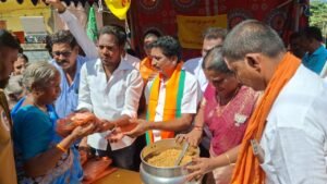 காஞ்சிபுரம் வெள்ள குளம் தெருவில் பாஜக சார்பில் முன்னாள் மாவட்ட இளைஞரணி செயலாளர் காமேஷ் தலைமையில் பசும்பொன் முத்துராமலிங்க தேவரின் 118 விழா 63 வது குருபூஜை விழாவை முன்னிட்டு அன்னதானங்கள் மற்றும் நலத்திட்ட உதவிகள் வழங்கப்பட்டது.