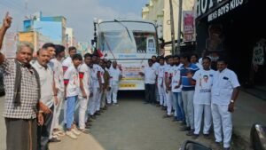 அந்த வகையில் பெரிய காஞ்சிபுரத்தில் பகுதி செயலாளர் திலகர் தலைமையிலும், மேட்டு தெருவில் உள்ள மாநகர அலுவலகத்தில் இருந்து பகுதி செயலாளர் தசரதன் தலைமையிலும் மாவட்ட ஆட்சியர் அலுவலகம் எதிரே பகுதி செயலாளர் வெங்கடேசன் தலைமையிலும் சின்ன காஞ்சிபுரத்தில் பகுதி செயலாளர் சந்துரு தலைமையிலும் ஆயிரக் கணக்கான இளைஞர்கள் புறப்பட்டு சென்றனர்.