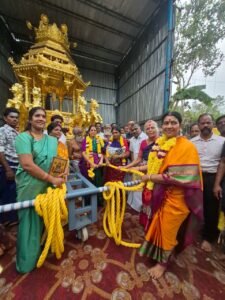 துர்கா ஸ்டாலின் காஞ்சிபுரம் வருகை. ஏகாம்பரநாதர் கோவிலுக்கு தங்கத்தேர் செய்த சிற்பிகளுக்கு சால்வை அணிவித்து கௌரவிப்பு