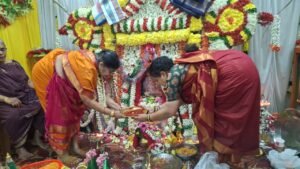 இதனைத் தொடர்ந்து ம சிறப்பு ஆராதனைகள் நடைபெற்றது. இதனைத் தொடர்ந்து மாலை மாற்றி கண்ணூஞ்சல், லாலி, நலங்கு, சிவன் அம்பாள் அலங்காரம் செய்யப்பட்டு திவ்ய நாமம், பின்னல்கும்மி கோலாட்டம் வைபவங்கள் சிறப்பாக நடைபெற்றது.