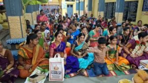 தனைத் தொடர்ந்து கலந்து கொண்ட பக்தர்களுக்கு ரவிக்கை, மஞ்சள், குங்குமம், வளையல் உள்ளிட்ட மங்களப் பிரசாதங்களும் வழங்கினர். தொடர்ந்து சுவாமி திருவீதி உலாவும் நடைபெற்றது.