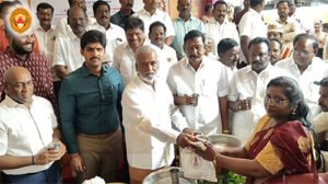 அப்போது, அம்மனுக்கு சிறப்பு அபிஷேகம் செய்யப்பட்டது. இதைத் தொடர்ந்து பக்தர்களுக்கு, மஞ்சள் குங்குமம் உள்ளிட்ட பிரசாதம் வழங்கப்பட்டது. இதைத் தொடர்ந்து அம்மனுக்கு படைக்கப்பட்ட கூழ் பிரசாதத்தையும் பக்தர்களுக்கு அமைச்சர் வழங்கினார்.