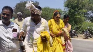 இதே போல மீஞ்சூரை சேர்ந்த மோனிஷா என்ற பெண்ணிற்கும் நெய்தவாயல் கிராமத்தை சேர்ந்த விஷால் என்ற இளைஞருக்கும் இன்று காலை மீஞ்சூரில் திருமணம் நடைபெற்றது. திருமணம் முடிந்தவுடன் மணமகன் விஷால் தனது மனைவி மோனிஷாவை அழைத்துக் கொண்டு நெய்தவாயல் கிராமத்தில் உள்ள வாக்குச்சாவடிக்கு வந்து தனது வாக்கை செலுத்தி ஜனநாயக கடமையை நிறைவேற்றினார். அடுத்தடுத்து புதுமண தம்பதிகள் வாக்குச்சாவடிக்கு வந்து தங்களது வாக்கை செலுத்திய சம்பவம் அங்கிருந்தவர்கள் மத்தியில் வரவேற்பை பெற்றது.