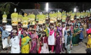 உலக நன்மை வேண்டியும் நல்ல மழை பெய்து விவசாயம் செழிக்க வேண்டி வழுதூர் பகுதியில் ஏராளமான ஆண்கள், பெண்கள் முளைப்பாரிகள் தலையில் சுமந்து ஊர்வலம்.