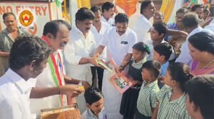 பின்னர் ஏராளமான பள்ளி குழந்தைகளுக்கு கல்வி உபகரணங்கள் வழங்கி, இனிப்புகள் வழங்கி சிறப்பாக கொண்டாடினர்.