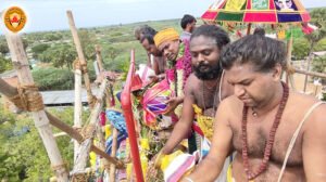 அப்போது ட்ரோன் மூலம் ரோஜா மலர்கள் தூவப்பட்டது. பக்தர்கள் மற்றும் பொதுமக்கள் மீது ட்ரோன் மூலம் புனித நீரும் தெளிக்கப்பட்டது. சுற்றுவட்டார பகுதியில் இருந்து ஆயிரக்கணக்கான பக்தர்கள் கும்பாபிஷேகத்தில் கலந்து கொண்டனர் வந்திருந்த அனைவருக்கும் கோயில் நிர்வாகம் சார்பில் சிறப்பு அன்னதானம் வழங்கப்பட்டது.