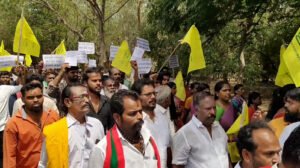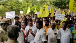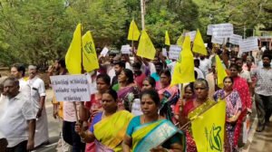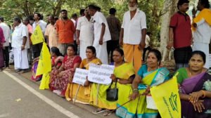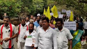 கார்ப்பரேட் சலூன் விலைப்பட்டியல் விளம்பர பலகையை அகற்றக்கோரி 50க்கும் மேற்பட்ட முடி திருத்தும் தொழிலாளர்கள் பேரணியாக வந்து மாவட்ட ஆட்சியரிடம் மனு அளித்துள்ளனர்.