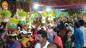 ராமநாதபுரம் அருகே தெற்கு காட்டூர் கிராமத்தில் முத்துமாரியம்மன் ஆலயத்தின் முளைக்கொட்டு உற்சவ விழா ஏராளமான பெண்கள் பாரியை சுமந்து சிறப்பு வழிபாடு செய்தனர்.