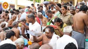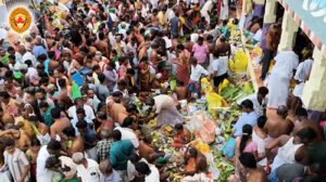 ஆடி அமாவாசை: திருவையாறு காவிரி கரை புஷ்பமண்டப படித்துறையில் மூதாதையர்களுக்கு திதி கொடுத்து தர்ப்பணம்