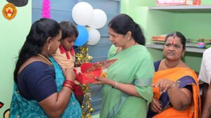 பின்னர், அங்கன்வாடியில் கல்வி பயிலும் குழந்தைகளுக்கு இனிப்புகளை கனிமொழி கருணாநிதி எம்.பி. வழங்கினார்.