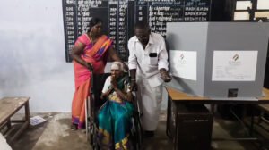 வாக்குச் சாவடிக்கே வந்து வாக்களித்த 102 வயது மூதாட்டி!
