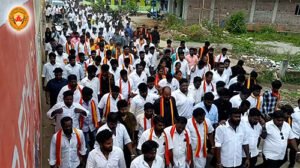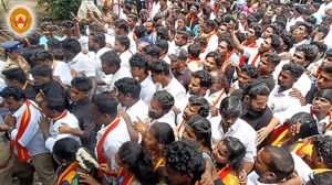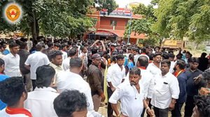 இன்று திருவள்ளூர் வடக்கு ஒன்றியம் மாவட்ட செயலாளர் விஜயகுமார் தலைமையில் தமிழக வெற்றி கழகம் சார்பில் இரண்டு கிலோமீட்டர் கொல்கத்தா தேசிய நெடுஞ்சாலை சர்வீஸ் சாலையில் நடைபயணமாக வந்து காவல் நிலையத்தில் புகார் மனு அளிக்க வரும்போது காவல்துறையினருக்கும் போராட்டக்காரர் களுக்கும் இடையே தள்ளு முள்ளு ஏற்பட்டது.