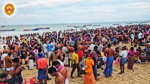 ஆடி அமாவாசை: தூத்துக்குடி புதிய துறைமுக கடற்கரைப் பகுதியில் முன்னோர்களுக்கு தர்ப்பணம்