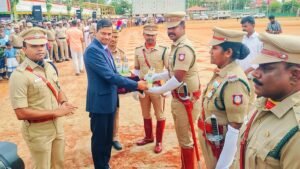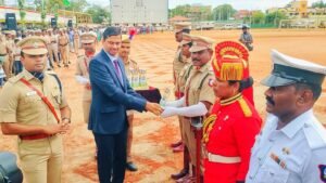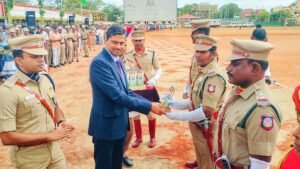 நாட்டின் 79 ஆவது சுதந்திர தின விழாவை முன்னிட்டு தூத்துக்குடி மாவட்ட விளையாட்டு அரங்கில் நடைபெற்ற சுதந்திர தின விழாவில் மாவட்ட ஆட்சியர் இளம் பகவத் கலந்து கொண்டு சாரல் மழையில் நனைந்தபடி தேசிய கொடியை ஏற்றி வைத்து காவல்துறை அணிவகுப்பு மரியாதையை ஏற்றுக் கொண்டார்.