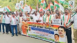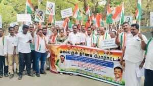 தூத்துக்குடி: பாஜக அரசு கொண்டு வந்த VB–G RAMG திட்டத்தை உடனடியாக வாபஸ் பெற வேண்டும் என தூத்துக்குடி மாநகர மாவட்ட காங்கிரஸ் கட்சி சார்பில் கண்டன ஆர்ப்பாட்டம் நடைபெற்றது.