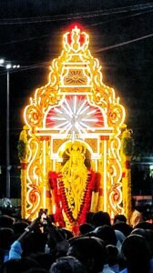இதில் மின் விளக்குகளால் அலங்கரிக்கப்பட்ட சப்பரத்தில் மலர் மாலைகள் அணிவிக்கப்பட்டு சப்பரத்தில் மாதா எழுந்தருளி பக்தர்களுக்கு காட்சியளித்தார்.