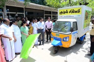 இதனைத் தொடர்ந்து, மின்னணு கழிவுகளை சேகரிக்கும் வாகனத்தை கனிமொழி கருணாநிதி எம்.பி கொடி அசைத்து தொடங்கி வைத்தார்.