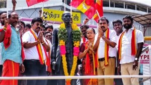 மாநில துணைப் பொதுச் செயலாளராக நியமனம் செய்யப்பட்டுள்ள சுபத்ரா முருகன் மற்றும் ஸ்ரீவைகுண்டம் தமிழக வெற்றி கழக பொறுப்பாளர் ஜே.கே.ஆர்.முருகன் மற்றும் தமிழக வெற்றிக்கழக நிர்வாகிகள் இன்று தூத்துக்குடி மாநகர பகுதிகளில் அமைந்துள்ள அண்ணா, பெரியார், முத்துராமலிங்க தேவர், காமராஜர், குரூஸ்பர்னாந்த் உள்ளிட்ட தலைவர்களின் சிலைக்கு மாலை அணிவித்து மரியாதை செலுத்தினர்.