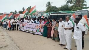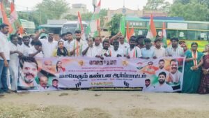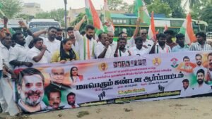 இதன் ஒருபகுதியாக, தூத்துக்குடி சிதம்பரம் நகர் பேருந்து நிறுத்தம் அருகில் இளைஞர் காங்கிரஸ் கட்சி சார்பில் தூத்துக்குடி மாநகர் மாவட்ட தலைவர் மரியா ஆல்வின், தெற்கு மாவட்ட தலைவர் ராஜகுமாரன் ஆகியோர் தலைமையில் கண்டன ஆர்ப்பாட்டம் நடைபெற்றது.